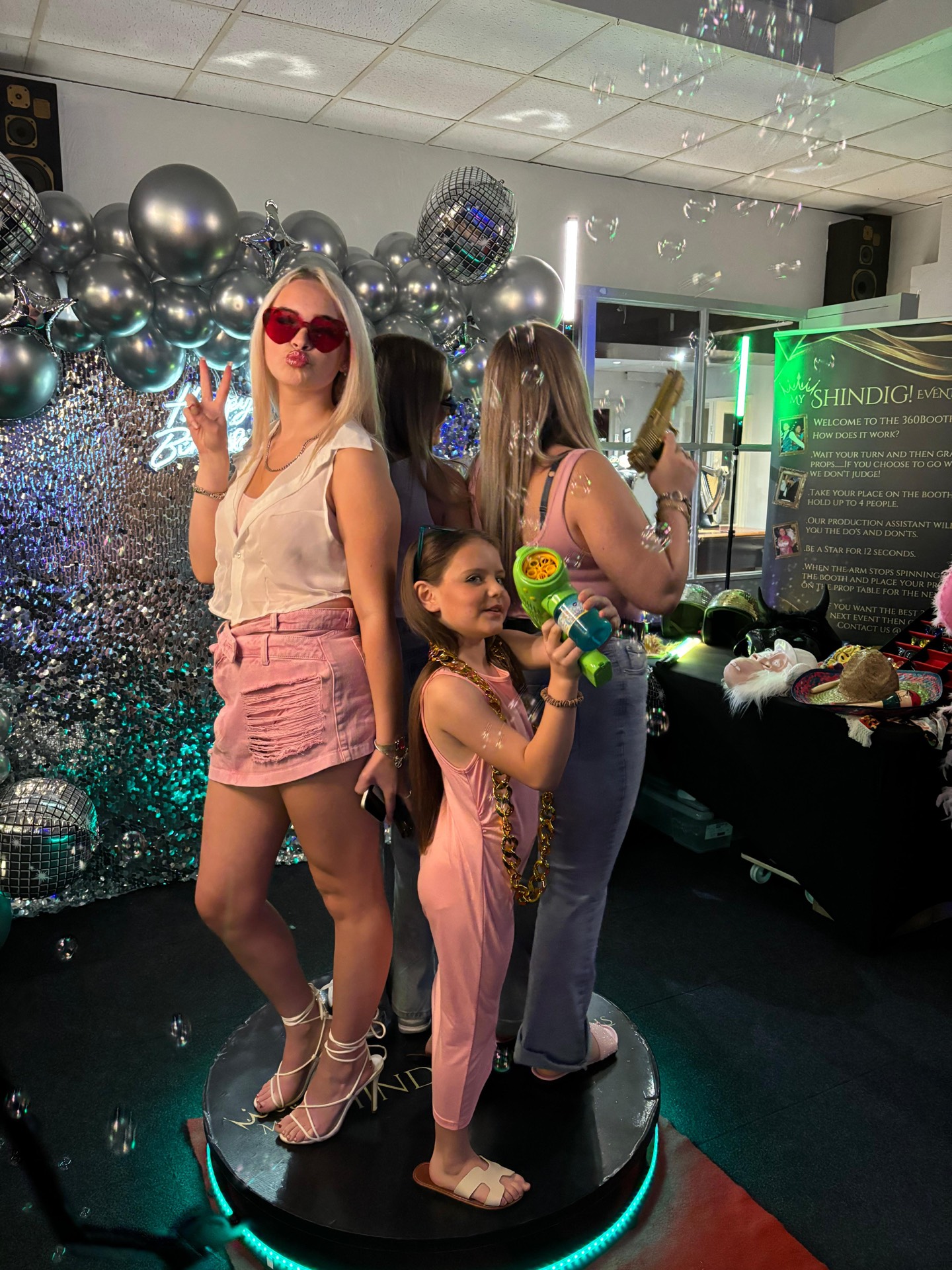 Hop on the platform and let the camera arm do the work. It spins 360° around you to capture every angle.